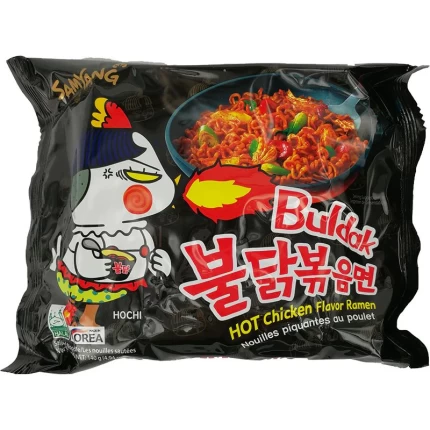 Ingredients: Pasta: Wheat flour, thickener (E1420, E412), palm oil, wheat gluten, salt, emulsifier E422, E322, soybean oil, acidity regulators (E501, E500, E339, E330), water, tocopherol powder, green tea extract, color ( E101). Soup: water, artificial chicken flavor (contains: gluten, soy, celery), soy sauce, sugar, habanero pepper, soybean oil, chili pepper, onion, flavor enhancer (E621), chili pepper oleoresin, garlic, chili pepper seed oil, thickener (E1420), coloring ( E160c), black pepper, curry spice (contains: celery). Fluff: mozzarella cheese (contains milk), roasted sesame, roasted seaweed.